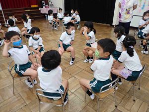 入園式ができなかったひよこぐみ、めだかぐみのお友だちに何かお祝いをしてあげたいね、と話すと、自分が小さいクラスの時にしてもらったことや、自分たちが一番上のクラスであることを話してくれました。