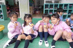 一生懸命歩いて帰ってきた後は、ごほうびにオレンジジュースを頂きました。