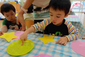 短冊の製作では、星のシールを張ったり、星の顔を描いたりと盛り沢山でしたが、上手に作っていた子どもたち🌟