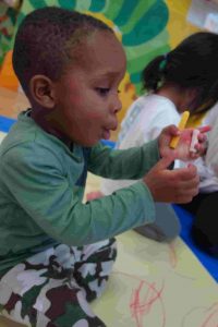 大きな模造紙にクレヨンでお絵描きにも挑戦🖍