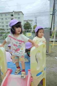 お部屋に戻る直前まで先生と一緒に走ったり、ドナルドボートやすべり台を滑ったりと身体をいっぱい動かして遊んでいます。