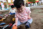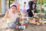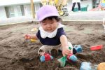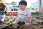 何度か繰り返すうちに、慣れてきて今ではスコップやカップを持って砂を入れたり出したり、穴を掘ったりとお砂遊びが大好きになったたんぽぽ組さんです💕
