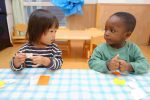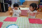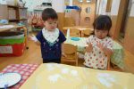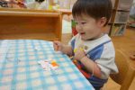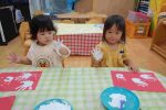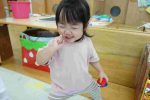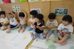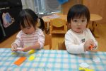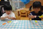 絵の具のついた手に興味津々な様子だったり、一生懸命折り紙をちぎろうと頑張る姿がとても可愛かったです=͟͟͞͞♡