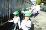 年少組 園外保育♪ 2025年11月4日 過ごしやすい気候の中、お散歩をしながら、電車を見に行きました! お友だちと手を繋ぎ、ワクワクしながら出発!左右を確認して横断歩道を渡ったり、交通ルールを守って、一生懸命歩きました。 線路の近くに着くとすぐに、なんと、スペーシアXが!!大興奮の子どもたち!!! 普通列車の他に、リバティやスペーシアも見ることができ、大満足で帰ってきました♪