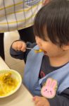 苦手そうな表情をしていたお友だちも一口チャレンジ!