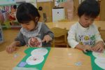 靴下ではカラーシールを使ってデコレーション!”どこがいいかな~”と自分で考えてシールを貼り、素敵な作品が完成しました︵‿☆