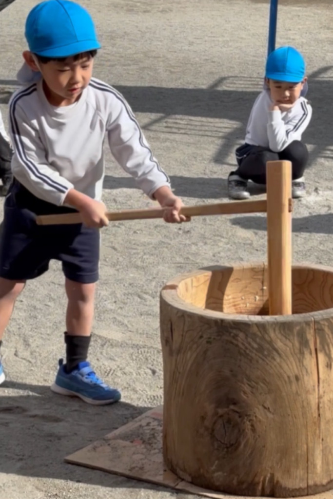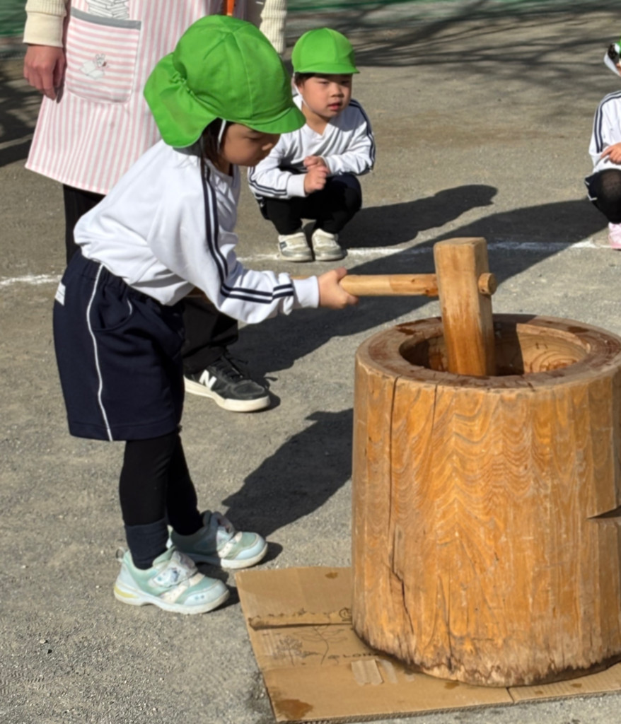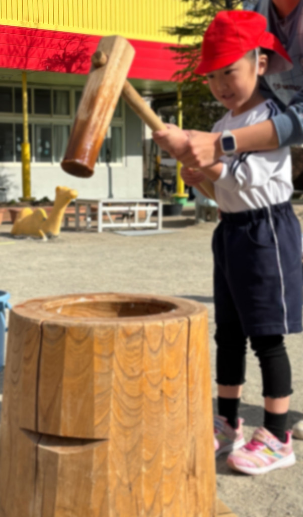 「今日はおもちつきの日だ!」と、朝からとてもワクワクしている様子のお友だち♪