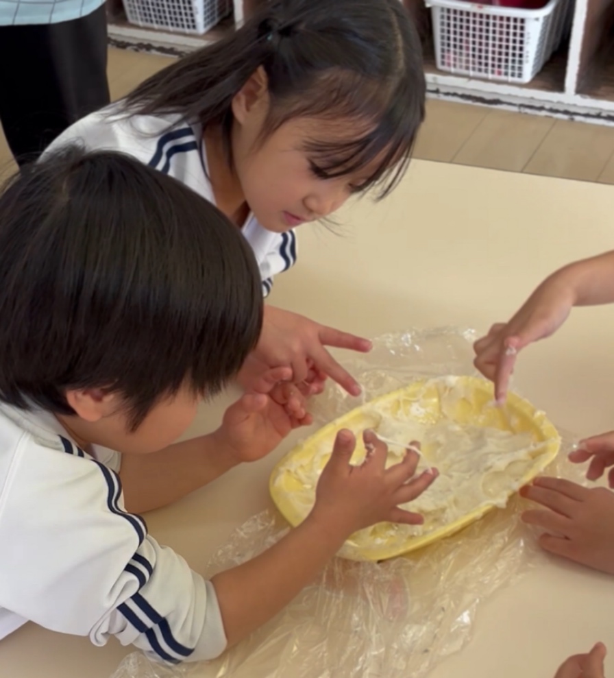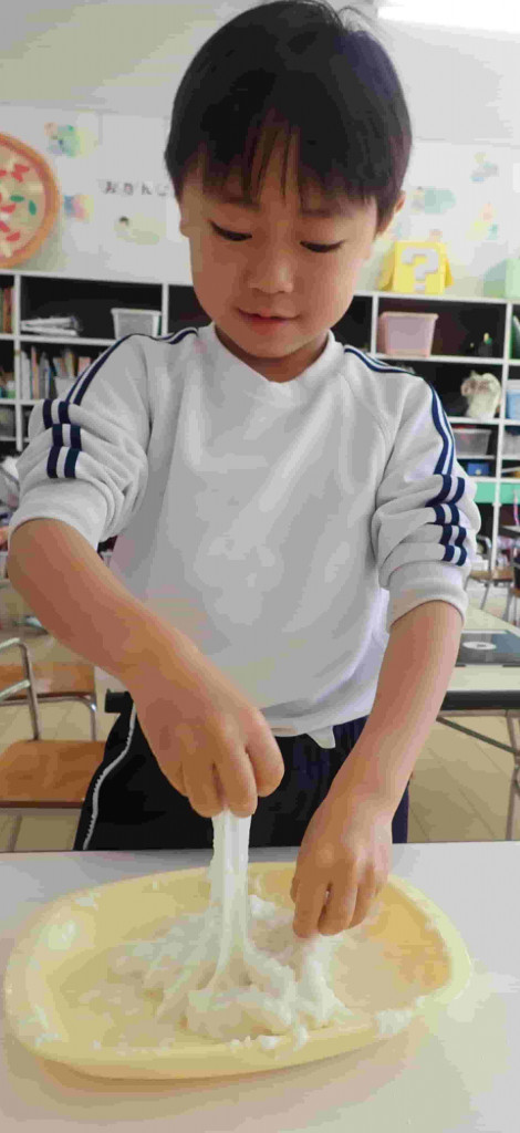 「まとまってる!」「だんだんのびてきた!」とおもちになっていく様子に興味深々でした。