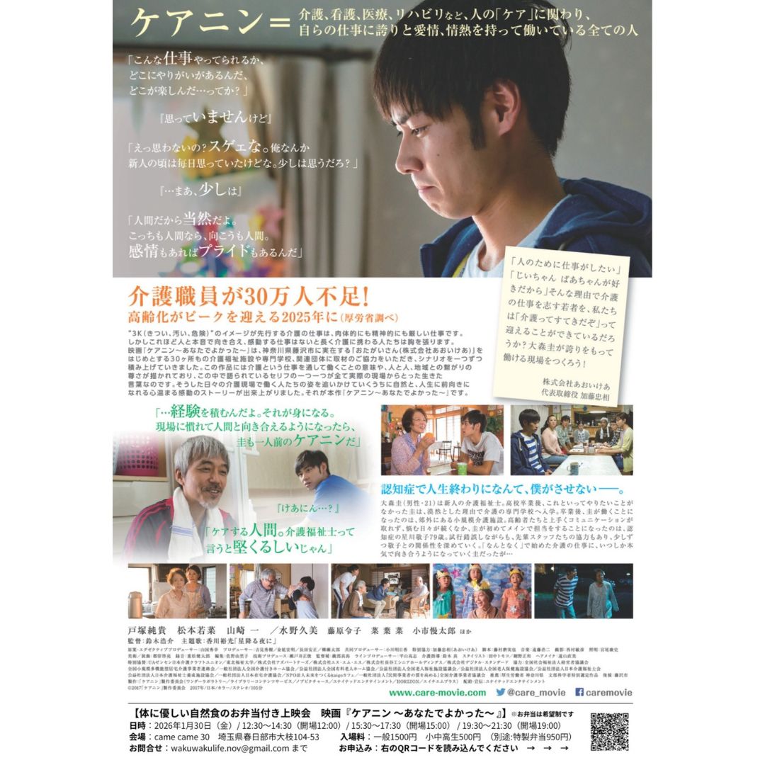 映画『ケアニン〜あなたでよかった〜』の上映会が開催されます。