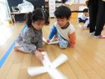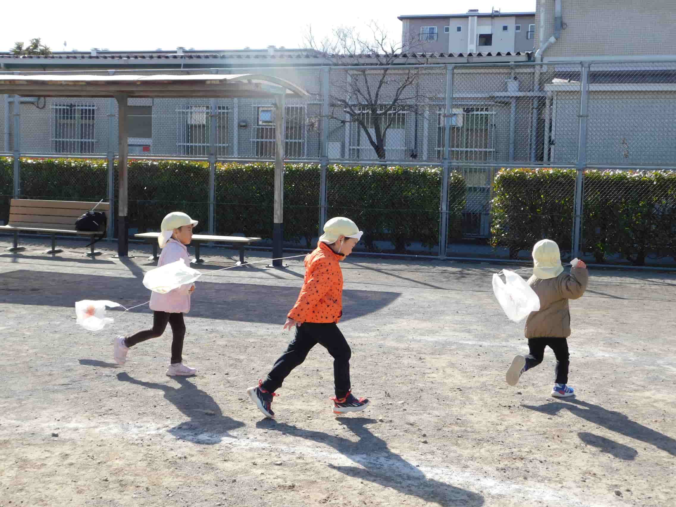 凧揚げは、グラウンドで何度か遊ぶことができました!風が吹いている日には凧がとってもよく揚がり、グラウンド中をお友だちと楽しそうに走り回っていました😊