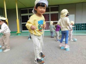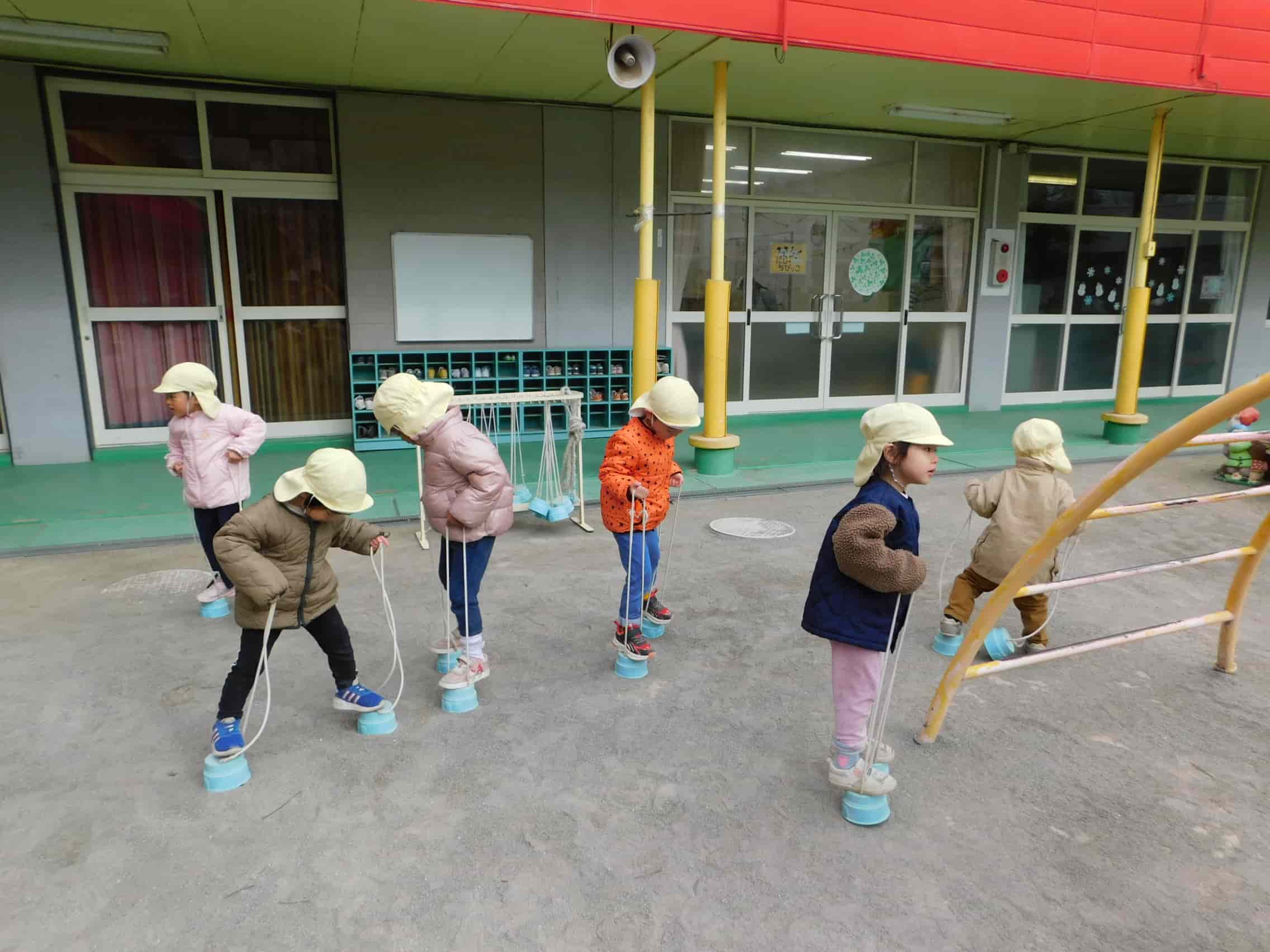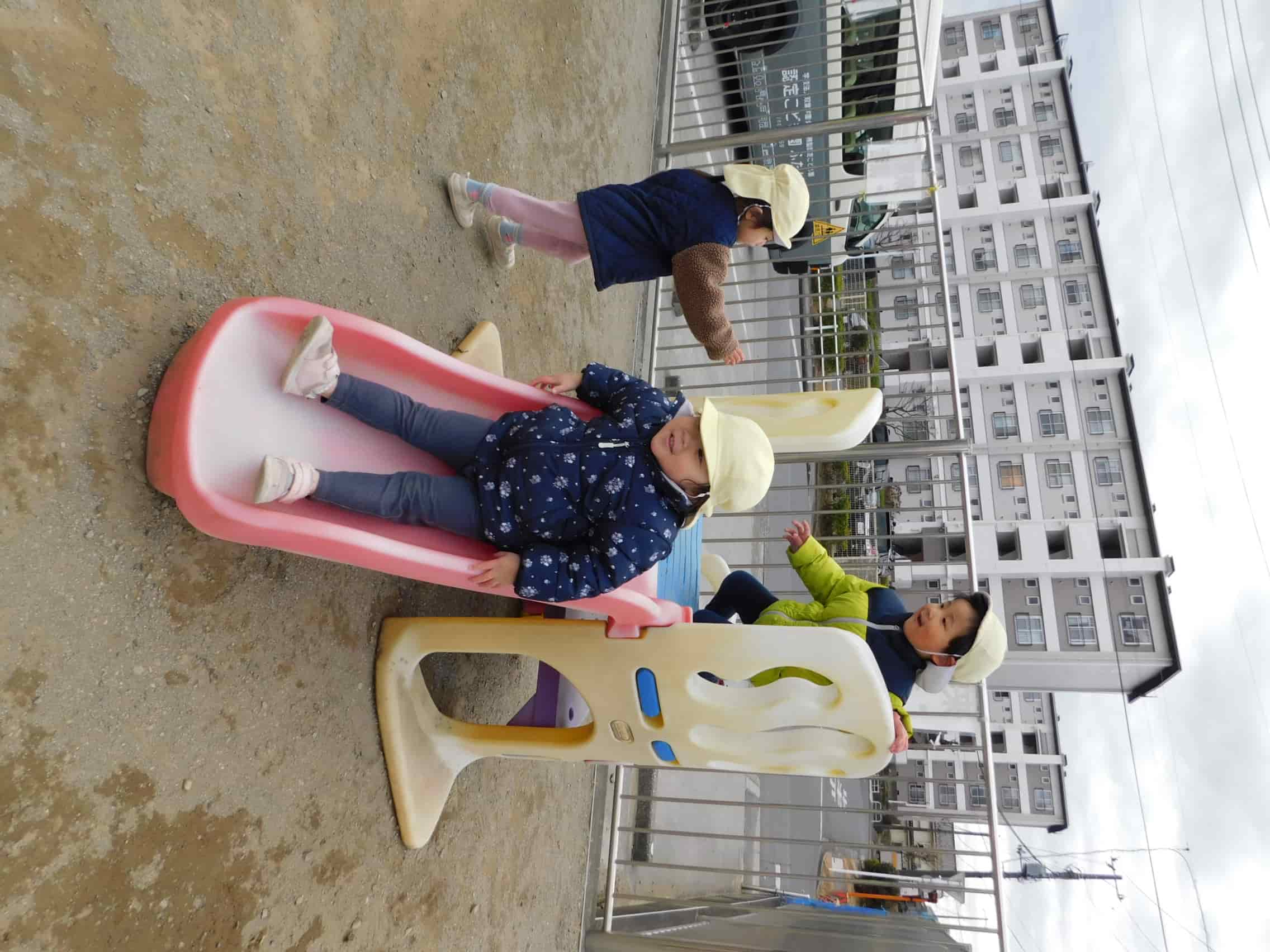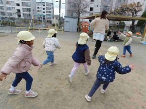 風が強い日や気温が低い日もありますが、寒さに負けず元気いっぱいに遊ぶさくら組のみんな!