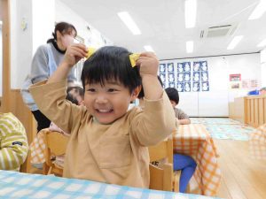 長いようで短いお正月休みも終わり、元気いっぱいの姿で登園してくれたさくら組のお友だち!