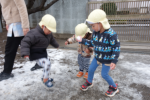 雪に目を輝かせる子どもたち✨「つめた~い!」と言いながらも何度も触って夢中で遊び込んでいました😊