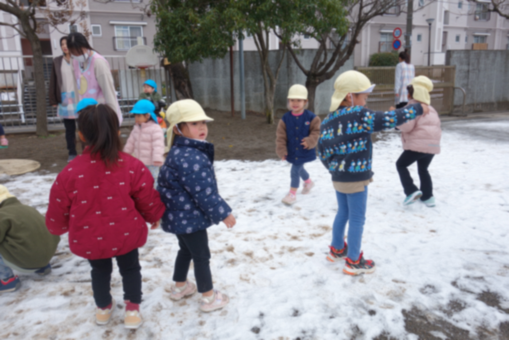 新年早々園庭にも雪が積もり、雪遊びを楽しみました♪