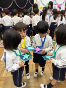 年長さんからは星のペンダントと合奏をプレゼントしました。感謝の気持ちを伝え合い、あたたかい雰囲気に包まれた素敵な会になりました♪
