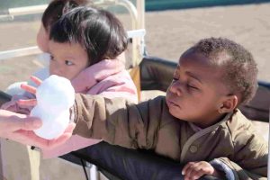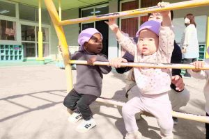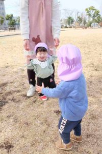 手先が上手に使えるようになり、スコップを上手に使ってお砂場で遊んだり、太鼓橋でみんなで座ったり、積雪があったときは、雪遊びも満喫しました😊