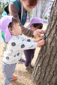 かけっこをしたり、ボール遊びをしたり、石拾いをしたり、木の皮をみんなでめくったり、身体もたくさん動かして歩行がますます上達しました✌