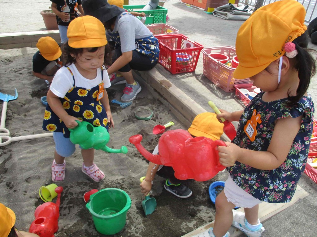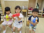 今週のちびっこふたば 2017年7月14日 くま組うさぎ組も色水遊びをして透明な水がカラフルな色に変身することを楽しみました。その後ジュース屋さんになって遊びましたよ。 ぞう組は久しぶりにすべり台で遊んだり、お部屋ではフラフープで遊びました。1学期もおしまいです。楽しい夏休みを過ごして2学期元気に会いましょうね。