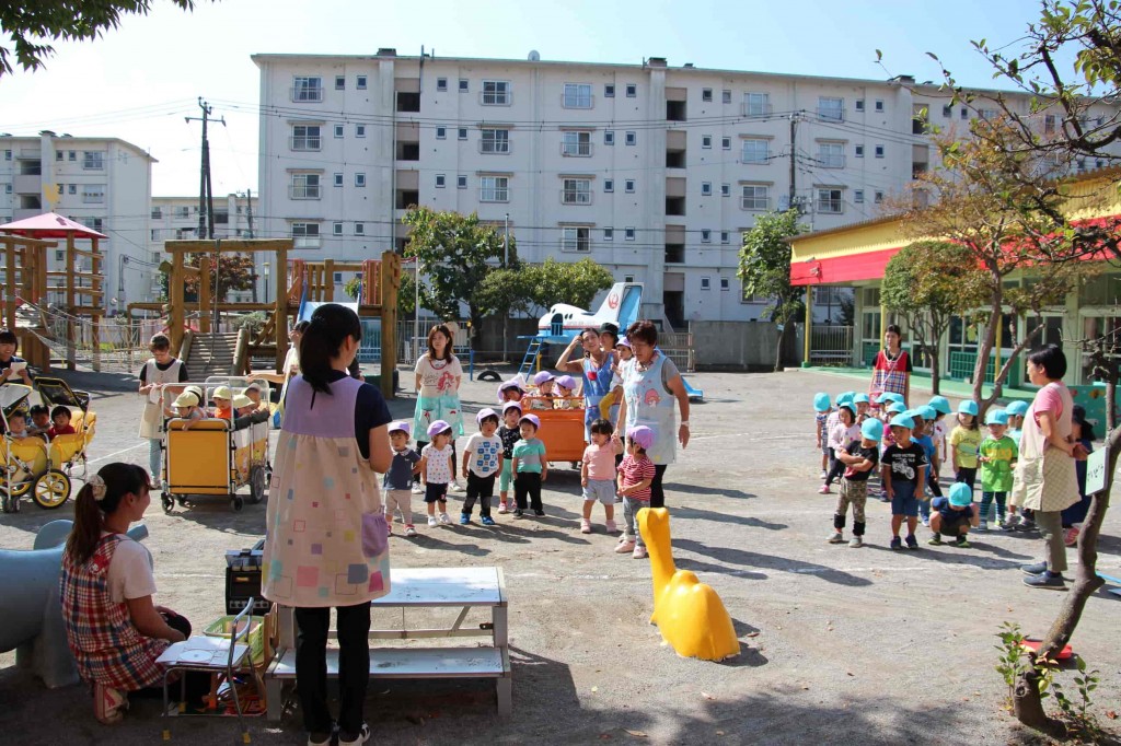 先日、乳児部ミニ運動会の2回目の予行練習が園庭で行われました。