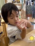 朝の会ではおにぎりの絵本を見たり、先生の真似をしたりしながらおにぎりを握る練習をしていました✴︎