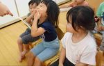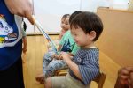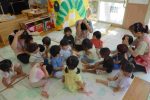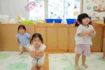 中には、今月の食育活動で行う「おにぎり作り」の話を聞き、おにぎりを握る真似をするお友だちもいました!