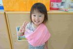 水害にまつわる紙芝居を通して学び、先生たちのお話しをよく聞いて、上手に防災頭巾を被る事ができました!