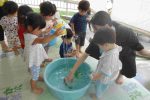 水遊びが出来る日は、子どもたちと一緒に思い切り楽しみました!!色水遊びや氷の感触遊びなども行いました。