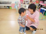 その後、年少中のお友だちから、ひばり組さんへ「手作りのプレゼント」を渡しました。